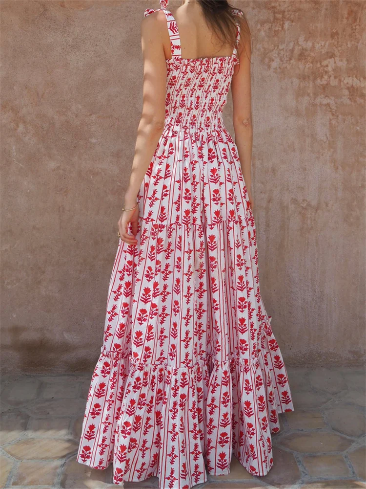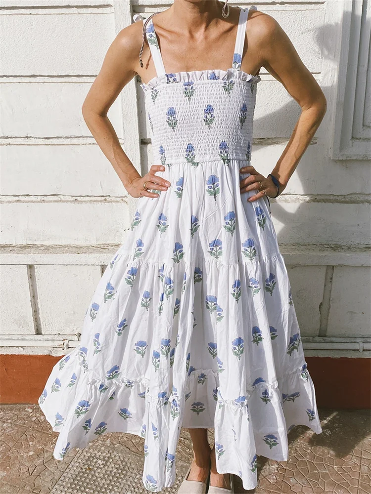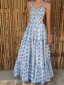 Floral print, bandage straps and sleeveless, smocked, summer dresses for women, beach dresses for women, vacation dresses for women, A-line and ankle length design, make your legs more slender and slim.